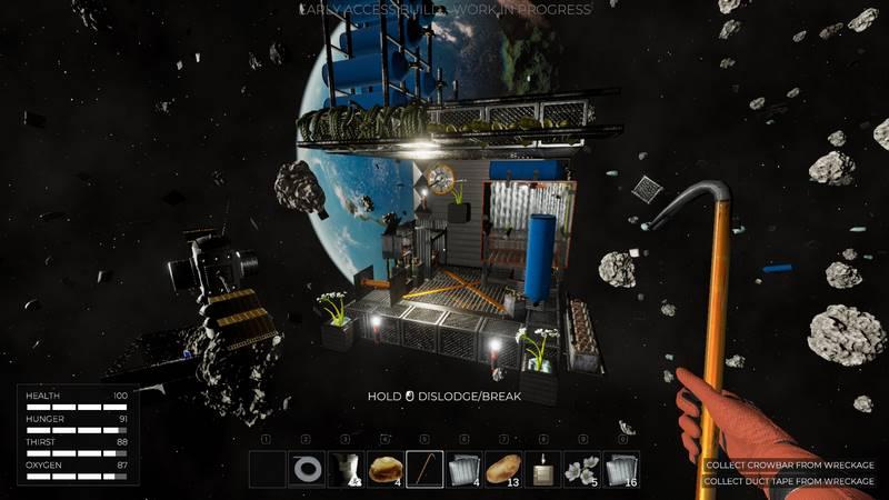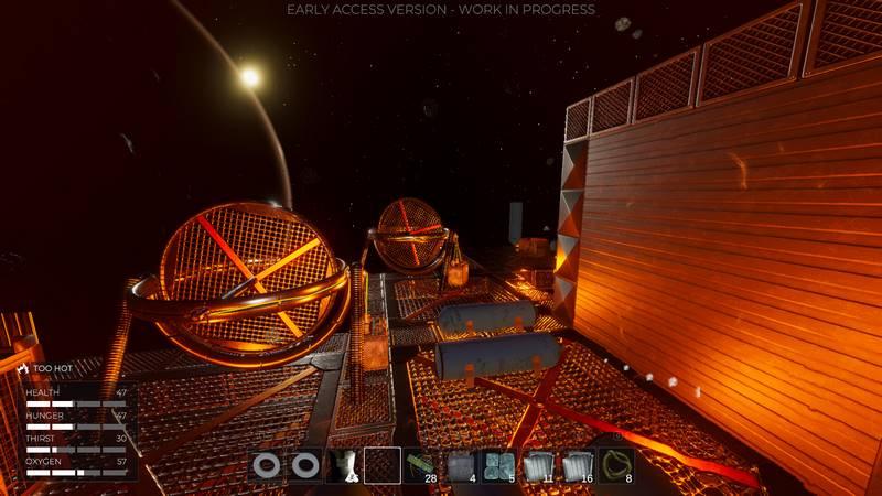 Привяжите себя к чему-то надежному, чтобы шагнуть в открытый космос. Вам предстоит не только самому искать нужные вещи среди остатков, но и перемещать импровизированный корабль, чтобы отыскать нужные ресурсы. То, что удастся отыскать, можно пустить для строительства платформы, стен, расширять размеры пространства, включать новые возможности, многое другое.