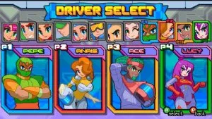 - Игрок может выбрать одну из двух машин, которые имеют базовые характеристики. Машинами управляют водители;