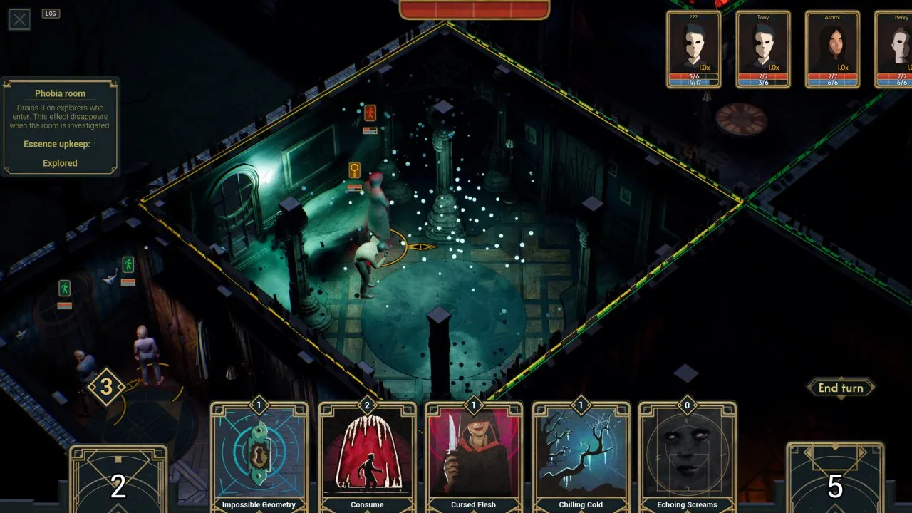 Что касается геймплея, то он разделен на 2 части. В утренние часы вам нужно заниматься обустройством дома, постепенно превращая его в ужасный лабиринт, из которого будет невозможно выбраться живым. Но именно в ночную пору будет происходить самое интересное, так как вы будете заманивать к себе гостей. Используя карточную колоду, вы сможете вызывать призраков, искажать реальность и насылать галлюцинации на несчастных людей, которым не повезло оказаться в вашем доме. Но также не забывайте о защите центральной комнаты, потому что именно там находится источник вашего могущества.