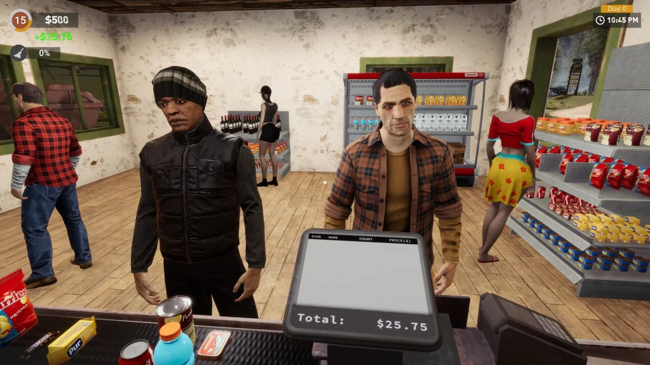 Данное дело вам предстоит начинать с малого. Перед вами будет всего лишь одна колонка. Также одна касса, помощи, правда, не будет. Так что работайте, пока хватает сил и энергии. Вы должны будете обслуживать клиентов, обрабатывать совершенные покупки, поддерживать чистоту на должном уровне. Причем, насколько успех придет, зависит от вас самих. Каждый клиент, что остался доволен, способен приближать к цели.
