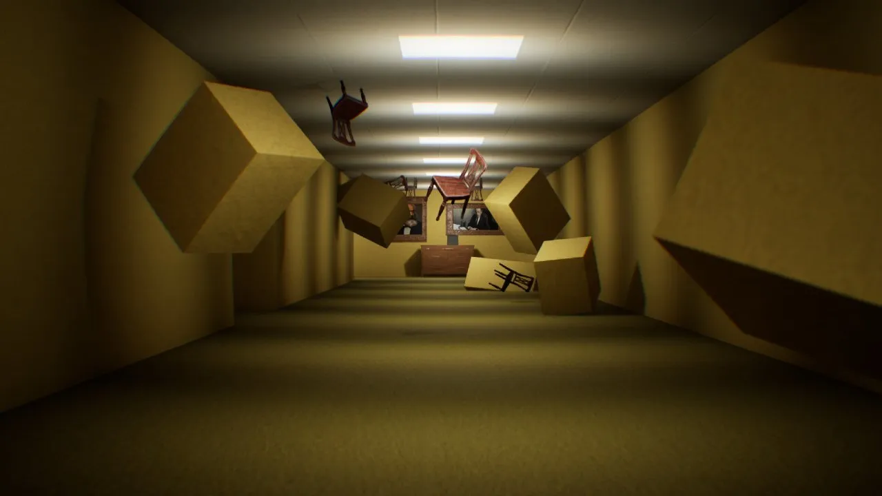 Пространства и атмосфера, вдохновлённые эстетикой Backrooms Level 0, больничными коридорами и бетонными конструкциями, создают необычный, слегка пугающий, но спокойный мир. Каждый из четырёх уровней обладает своим стилем и настроением, что усиливает ощущение погружения. Игрок может идти без спешки, не боясь потеряться или заблудиться. Головоломки здесь лёгкие, чтобы не мешать созерцательному процессу.