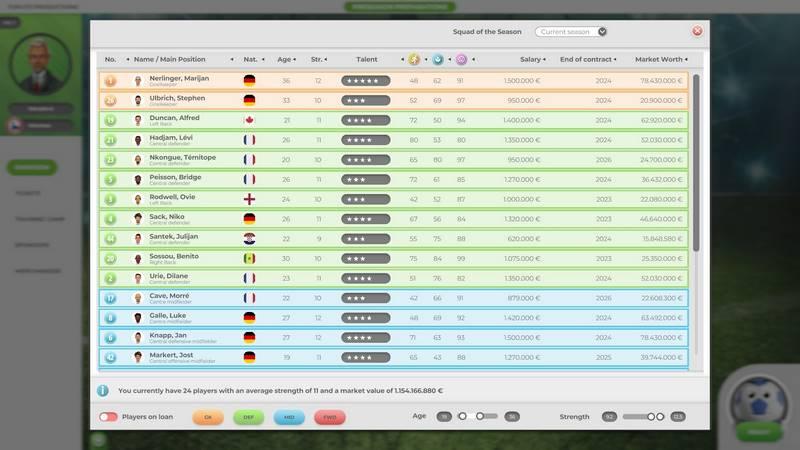 - Тщательно прописанная статистическая система для футболистов, команды и трансферов.