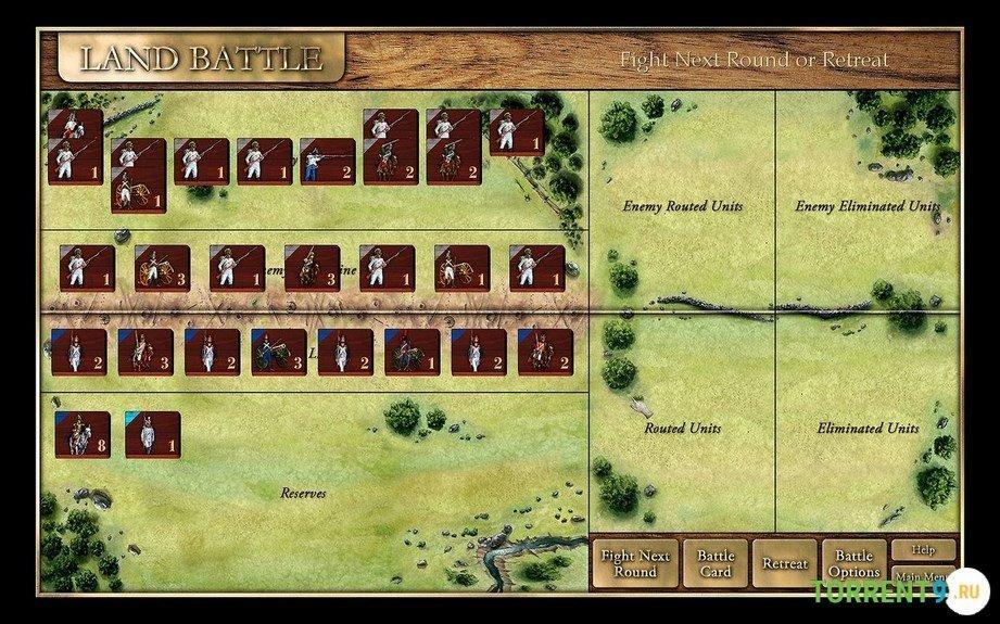 - При возникновении столкновения, будут затронуты лишь линии каждой из сторон, при этом у вас в резерве будет армия, которую можно будет задействовать. В ее состав входят пехота, артиллерия и кавалерия.